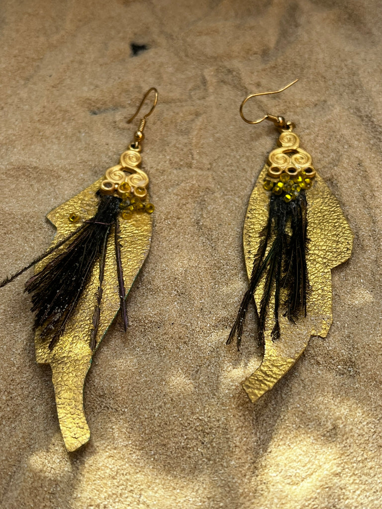 Flaunt these fabulous feather-shaped showstoppers that'll make your ears the life of the party! Each earring sports genuine peacock plumage, bringing a splash of wild glamour to your look. Who needs subtle when you can rock nature's most spectacular decoration? These winged wonders are ready to help you strut your stuff!